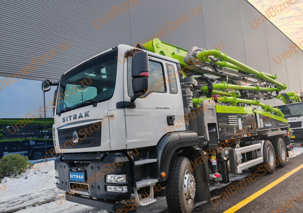- Высотное строительство: Способность достигать высоты до 56 метров (20+ этажей) делает его незаменимым для возведения высотных зданий без необходимости использования стационарных бетононасосов и дополнительных распределительных стрел.