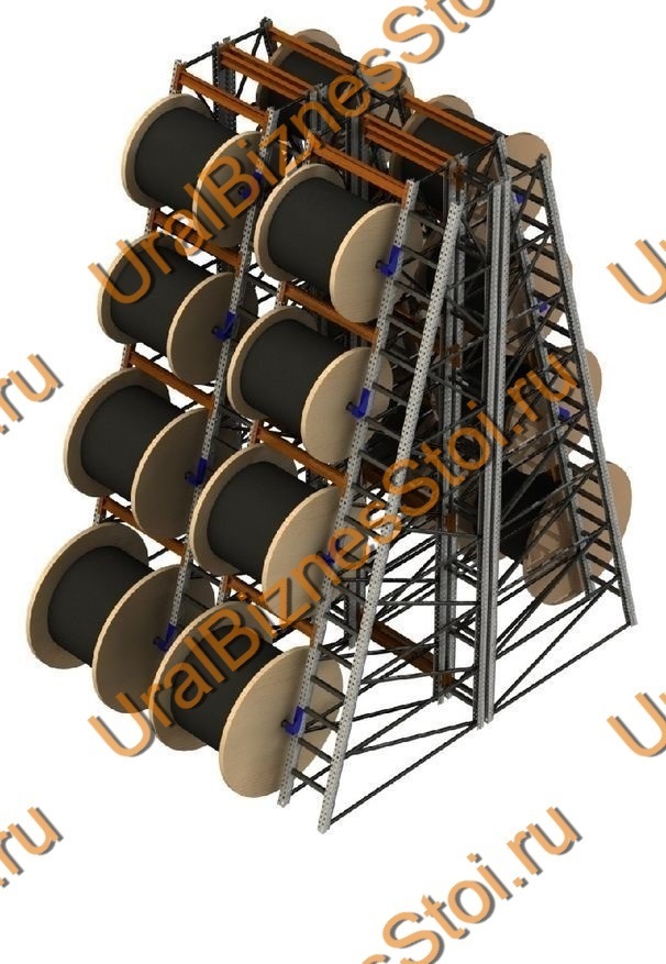 Стеллаж для кабельных барабанов 2400*4000*1050 мм на 6 барабанов