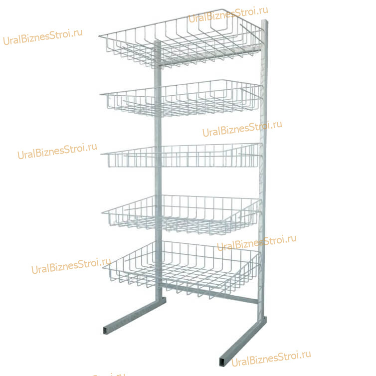 Каталог Торговое оборудование для магазинов Проволочная продукция (Корзины/стойки) Стойка прикассовая 1800х600х400 , 5 корзин